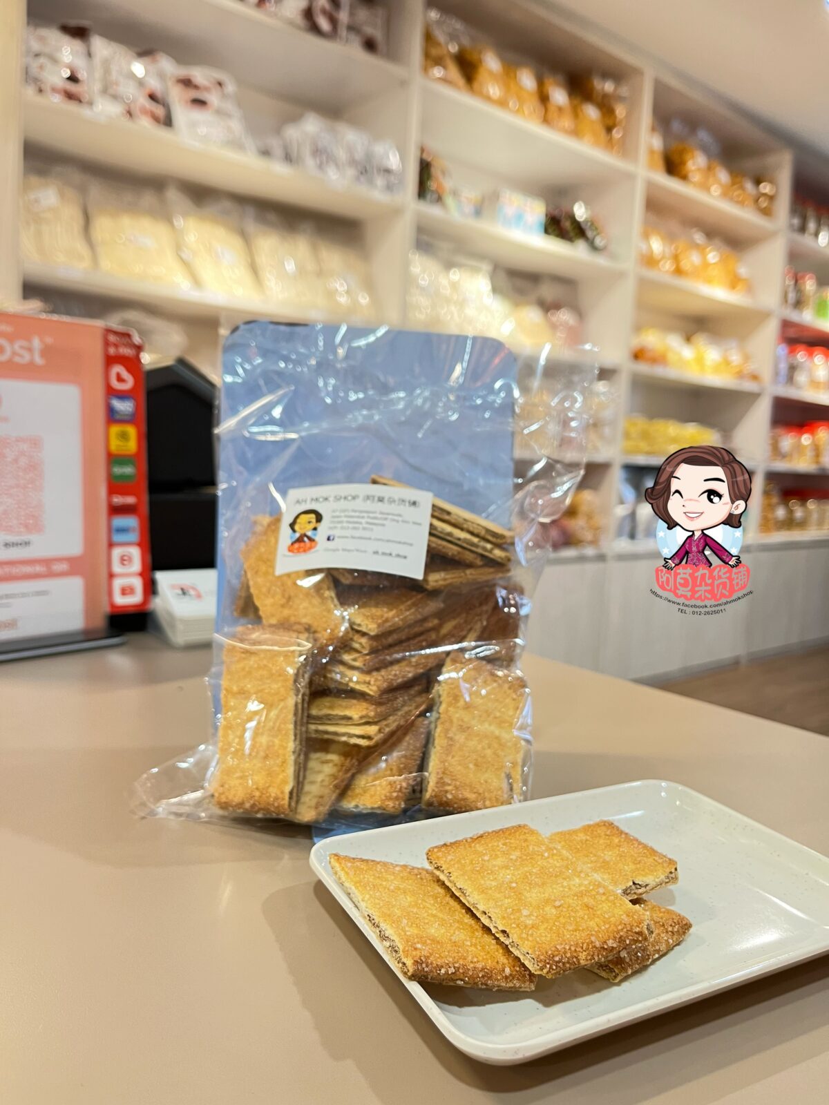 The traditional biscuits sold by Ah Mok are carefully selected.
